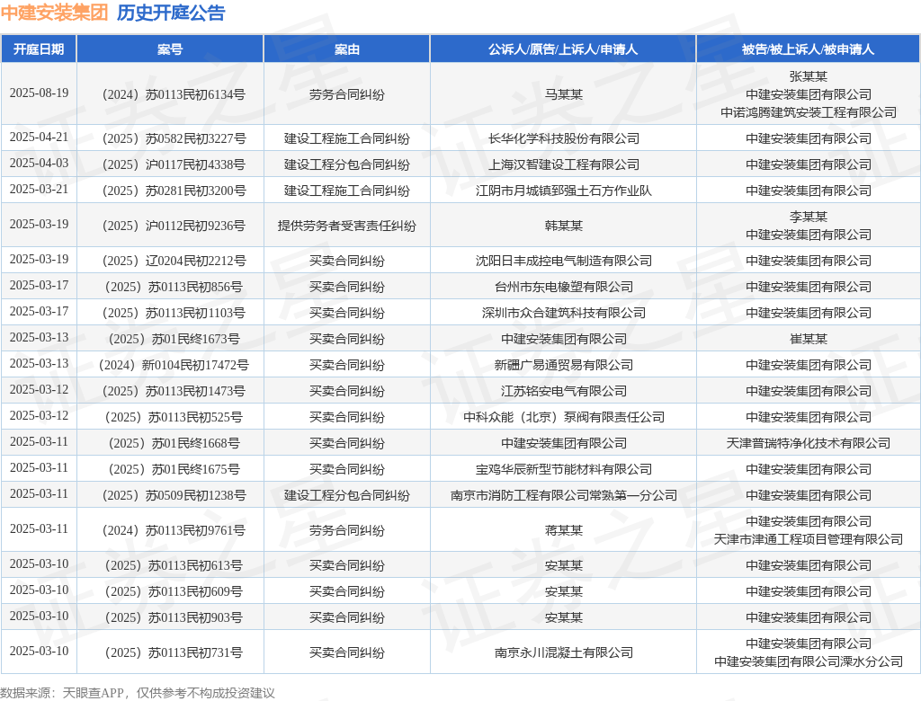 本站消息,根据天眼查APP显示,近日公布了一则中建安装集团有限公司作为被告/被上诉人的开庭公告,详细内容如下: